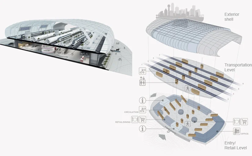 The Dallas office was selected amongst 32 finalist to provide a Design Concept and Vision for the Hyperloop One Global Challenge. To select the first hyperloop transportation network, Hyperloop One created a worldwide competition event inviting design firms to put forward a comprehensive commercial, transport and economic policy study.