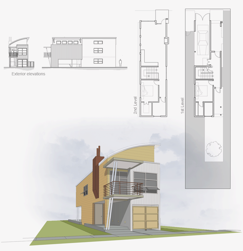 Design competition organized by the Portland Housing Authority for a 2 level 1,250 s.f. single residence.